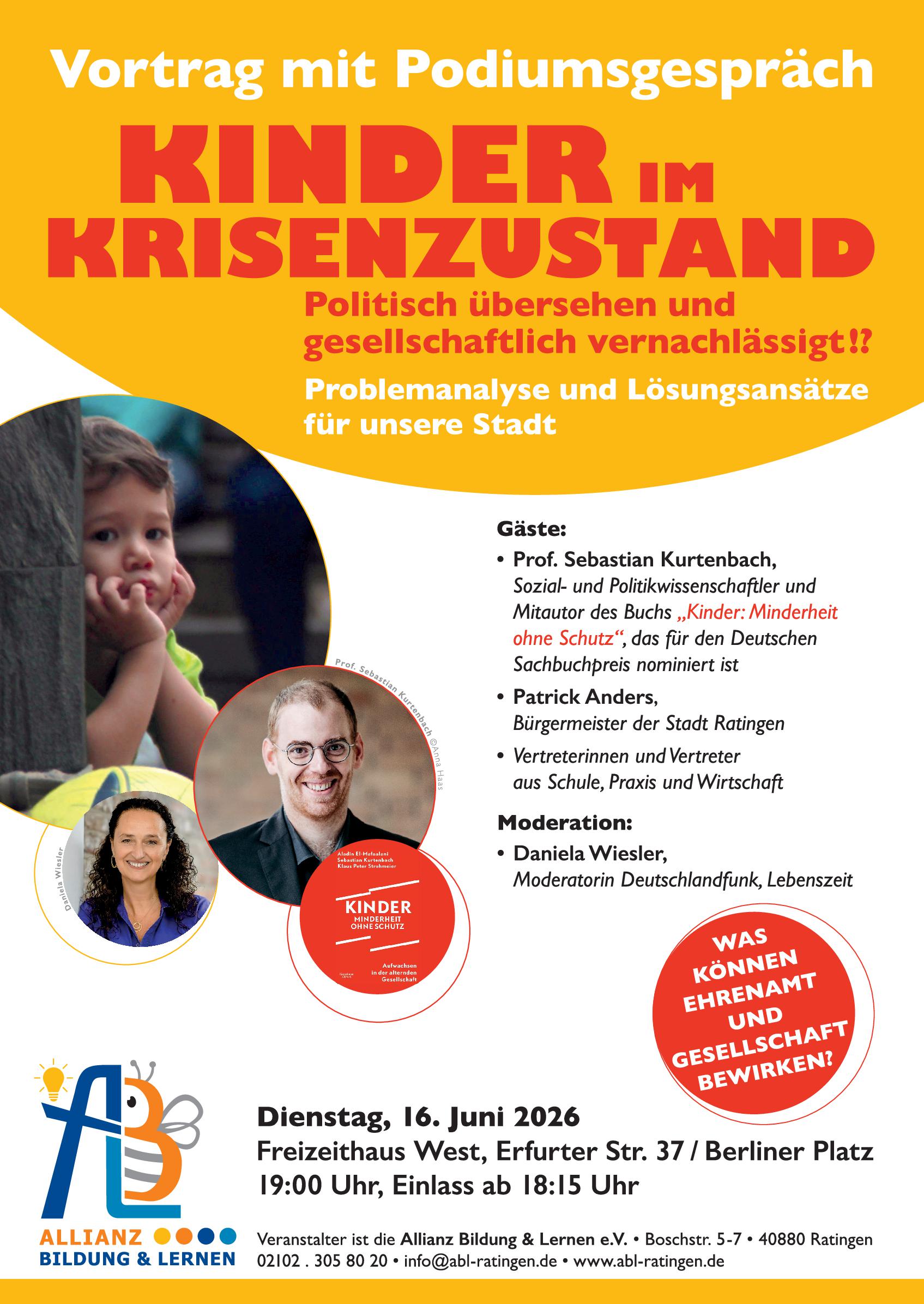 Für die bessere Planung, bitten wir um eine kurze Anmeldung unter info@abl-ratingen.de und einen Hinweis, falls Sie am Imbiss nach Vortrag und Podiumsgespräch nicht teilnehmen können. Wir weisen darauf hin, dass während der Veranstaltung Fotos gemacht werden. Teilen Sie bitte vor Ort mit, wenn Sie dies nicht möchten.